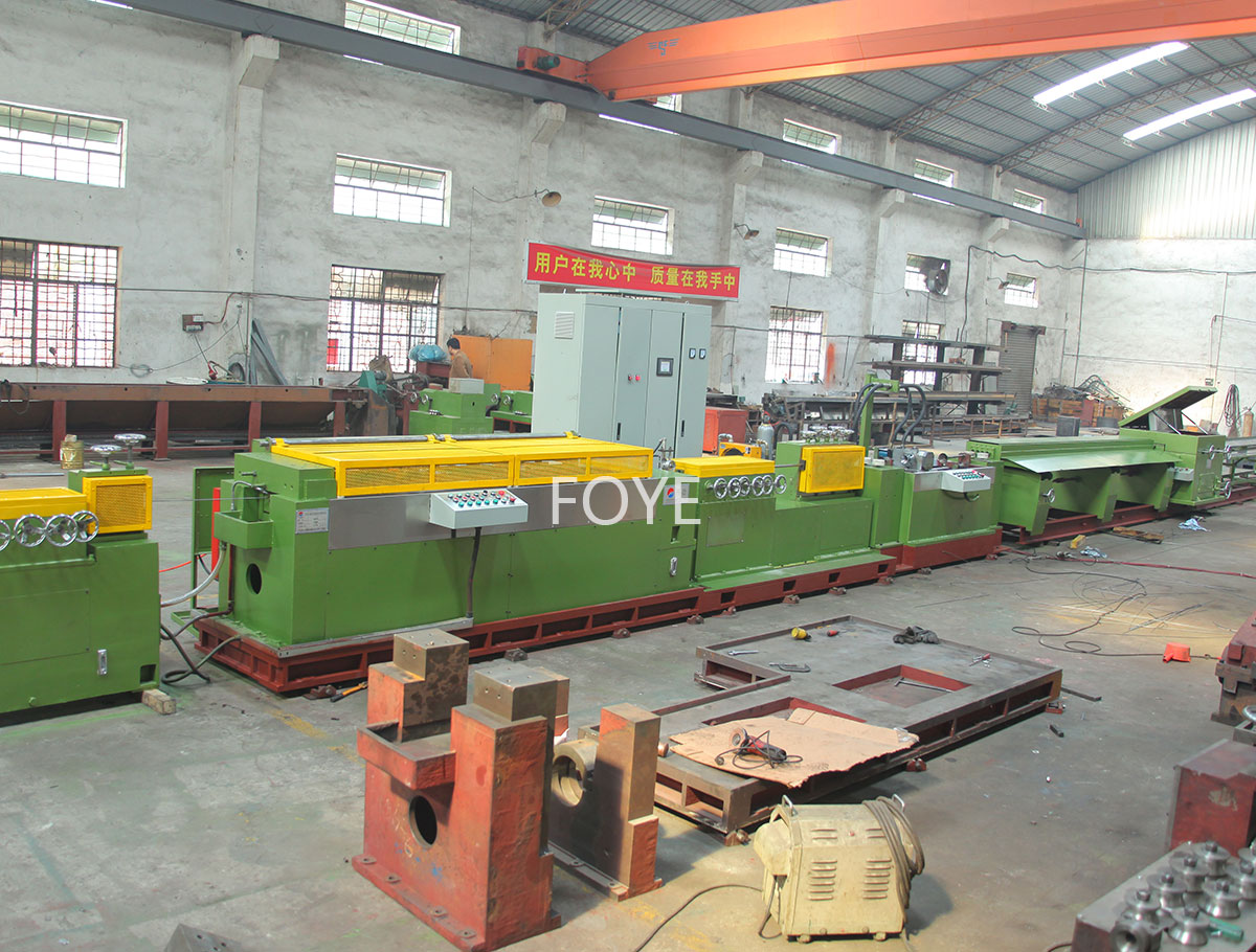 立式两辊机:具有调直及压光功能,由上下两个凸凹辊对金属棒进行表面研磨及矫直。特征是滚筒的加压量是可以自动调节的,可以再度提高金属棒的直度。佛冶机械生产的立式两辊机是别人模仿不来的。